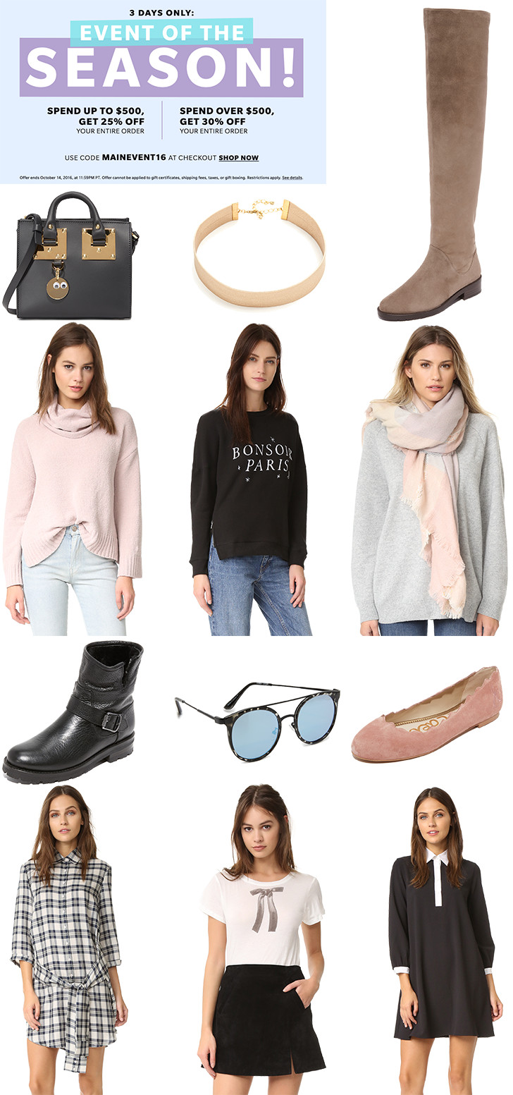 Those that know me know that I love a good sale. And we're right in the middle of a really great Shopbop sale! I've been browsing the site since yesterday, and added so many things to my cart before realizing that I needed to restrain myself. I put together my top picks to share what's on my radar in terms fall and winter fashion. Nearly everything on the Shopbop site is on so I'm sure something will catch your eye ;]